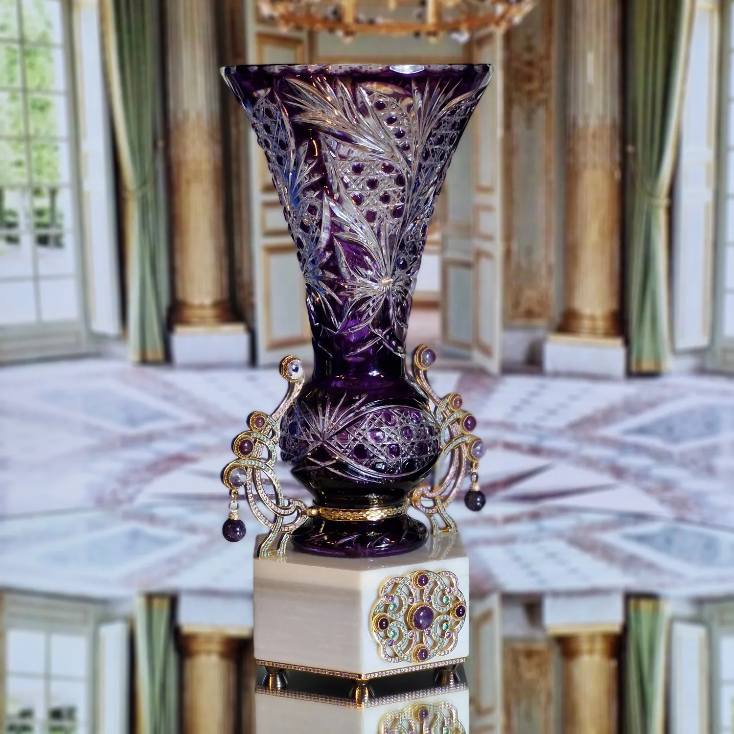 «Аметистовая грация» — не просто ваза. Это посвящение утончённости, благородству и вечной женственности. Она создана не для цветов, а для взглядов, восхищения и тихого восторга. Предмет, способный не просто украсить интерьер, но стать его душой.