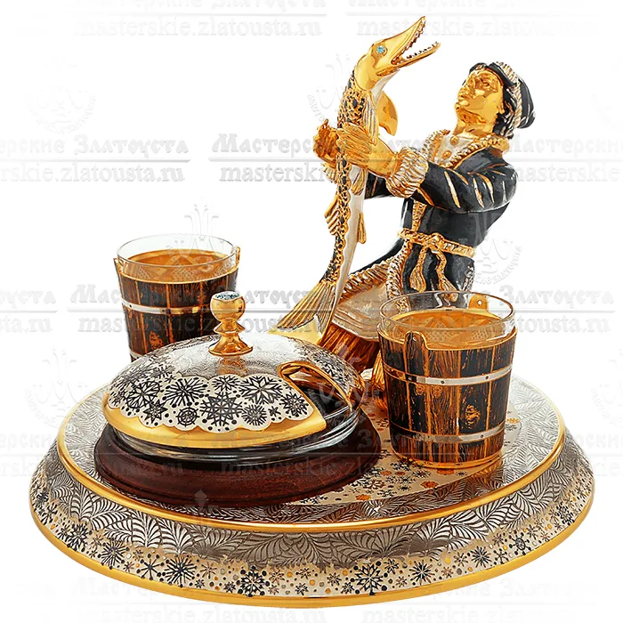 Благородные материалы, сложный декор и полностью ручная работа российских мастеров превращают набор не просто в сервировочный аксессуар, а в коллекционный арт‑объект.