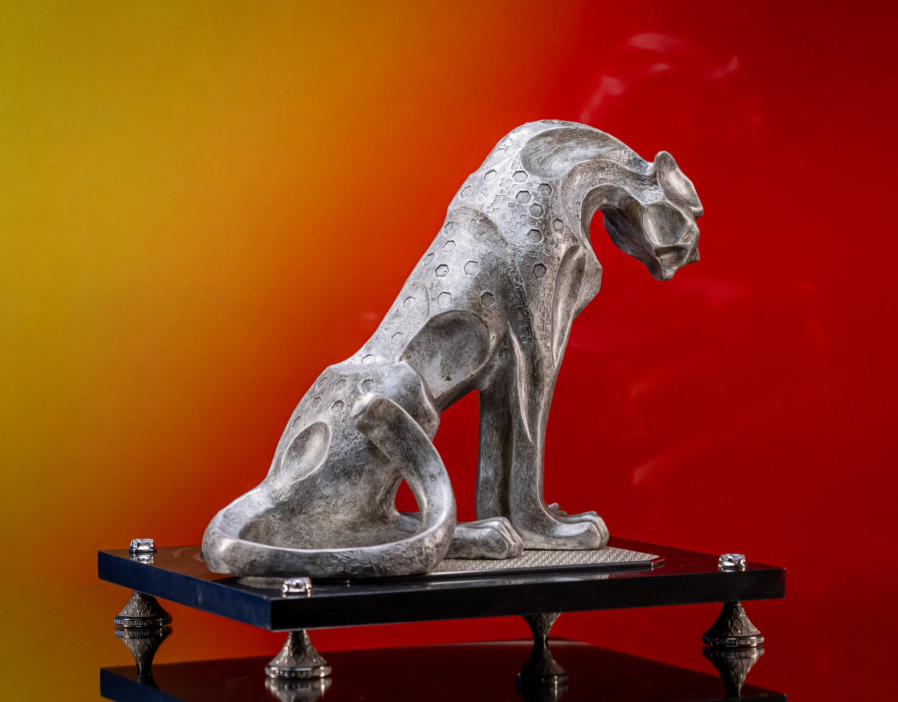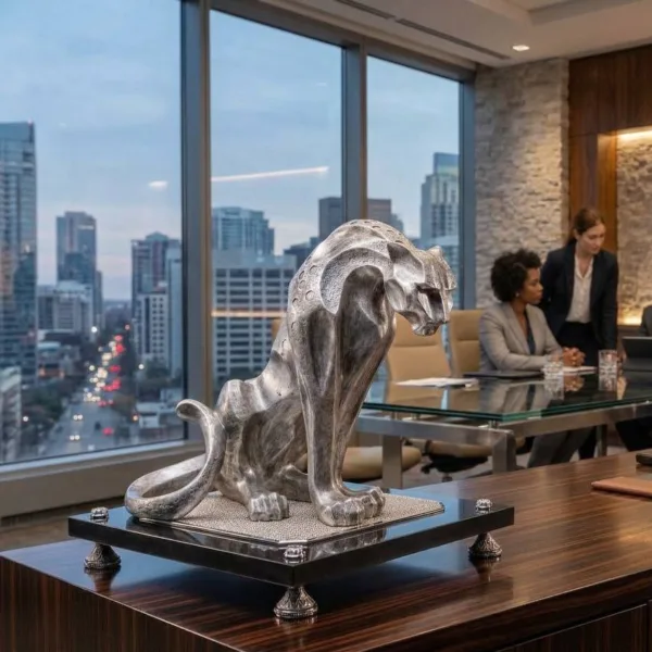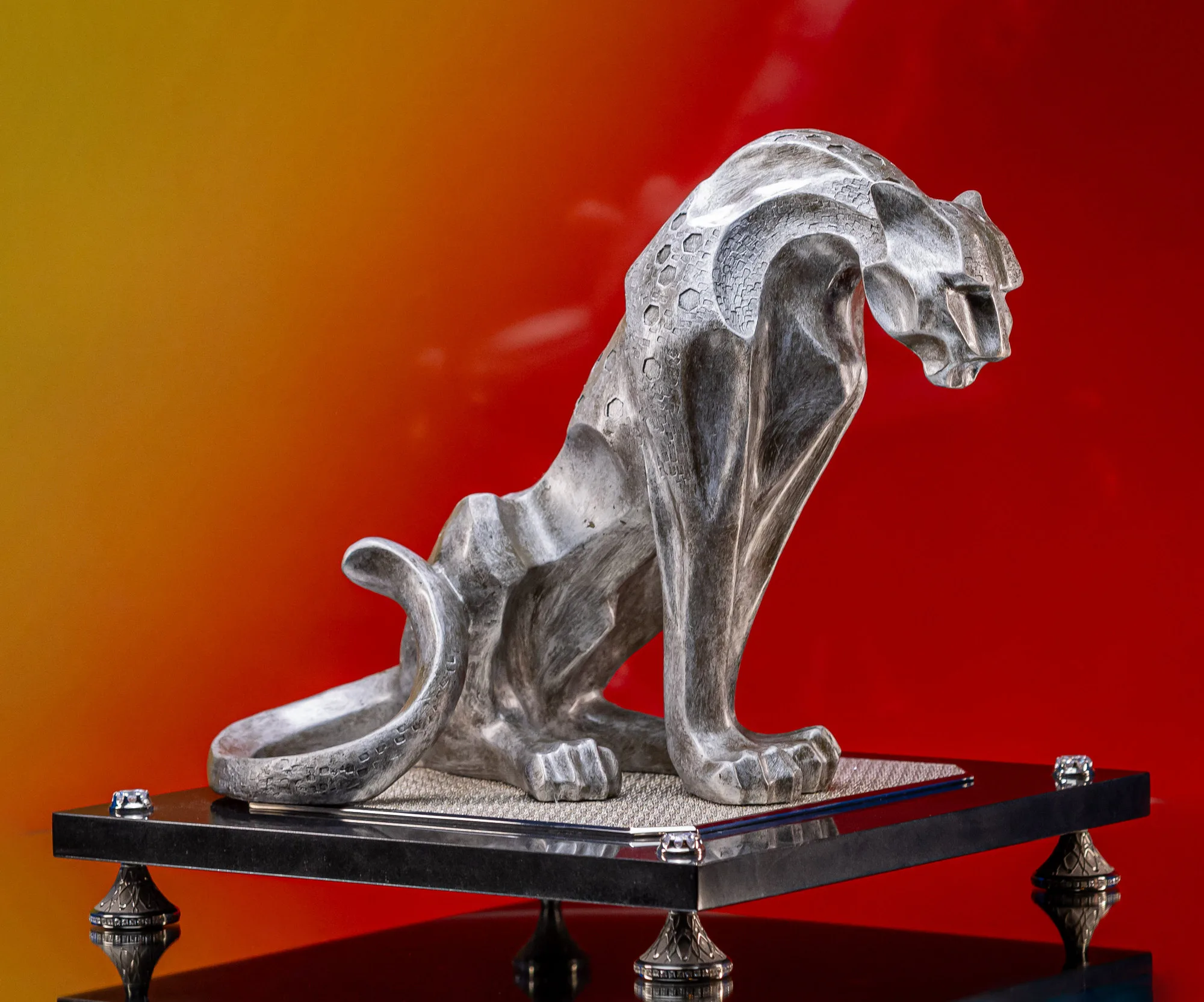 Интерьерная скульптура “Сила в ожидании” — метафора уверенного лидера, который выбирает момент для решающего рывка. Фигура пантеры изящно застывает в преддверии движения, подчеркивая достоинство, внутреннюю концентрацию и готовность к победе. Холодный блеск камня и строгий постамент создают атмосферу статусного кабинета, где каждая деталь говорит о характере владельца. Идеальный подарок бизнесмену, ценящему стратегию, выдержку и силу, не требующую лишних слов. Она гармонично вписывается в современный офис, напоминая каждый день: истинная мощь проявляется в умении выждать и нанести точный удар в нужный момент.