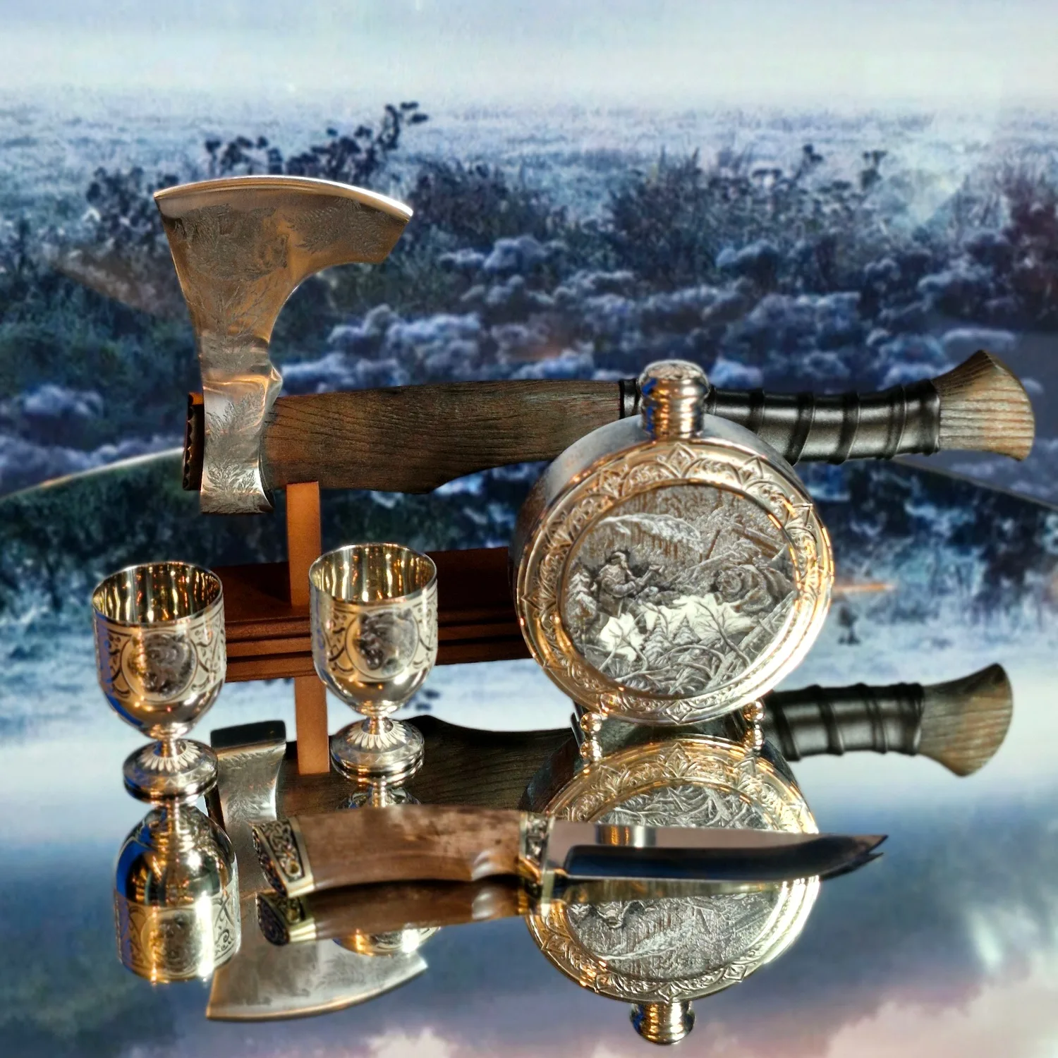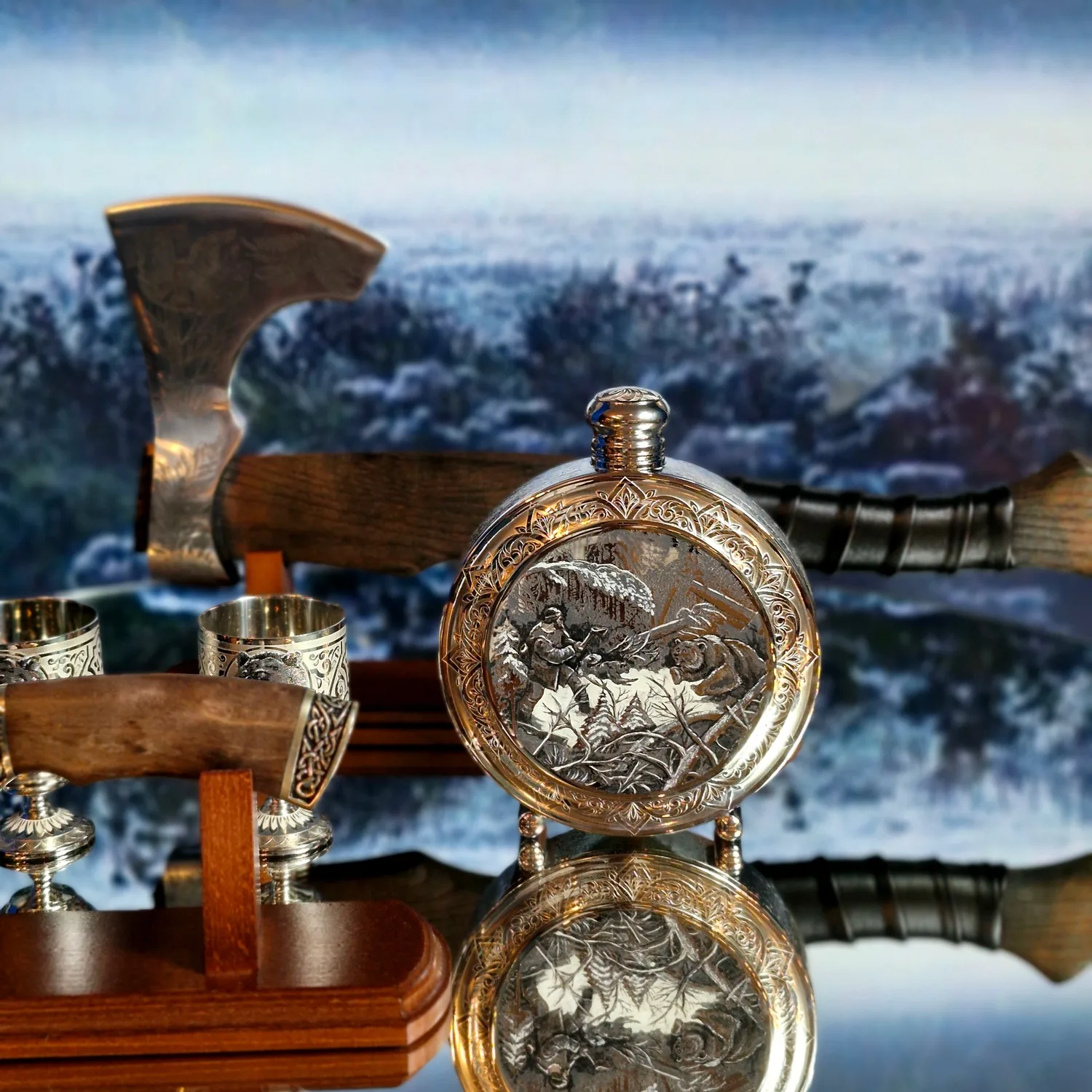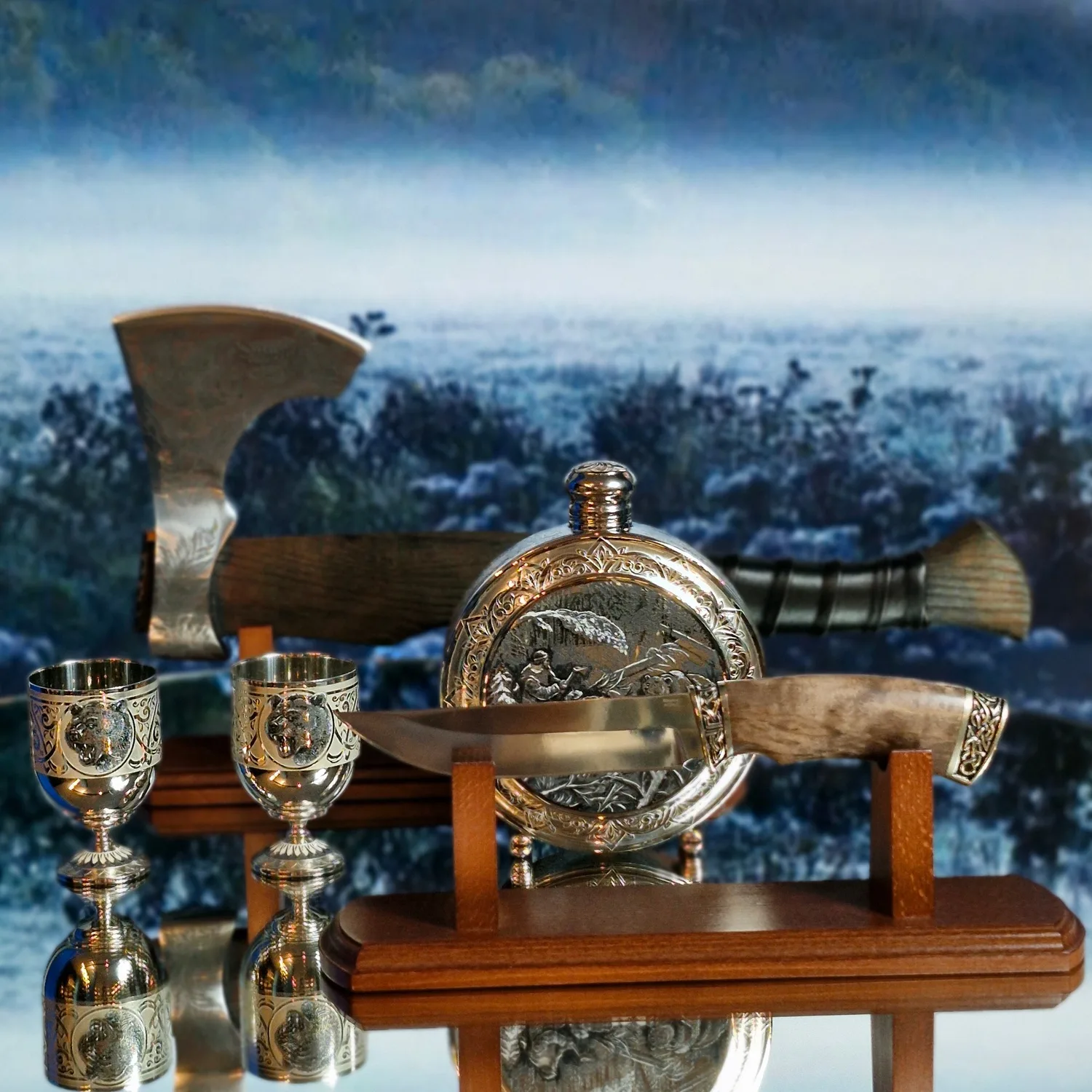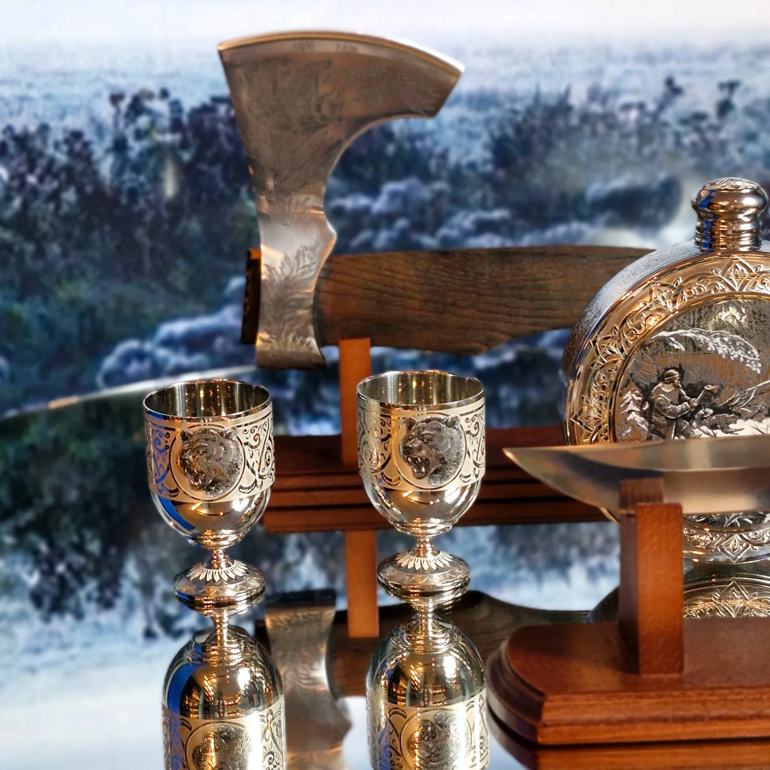 Это не просто набор, а история о широте русской души, стойкости и верности традициям. «Тайга в серебре» станет достойным спутником в дороге, эффектным акцентом в кабинете и подарком, который говорят не словами, а весом, блеском и характером.
