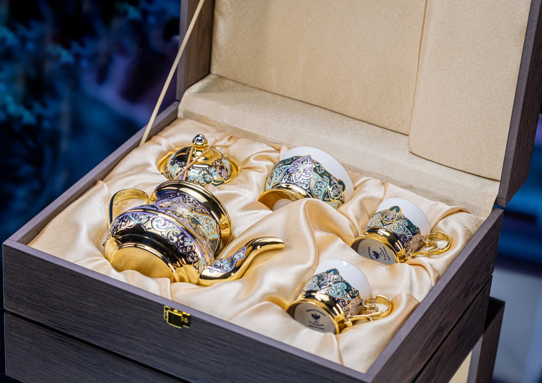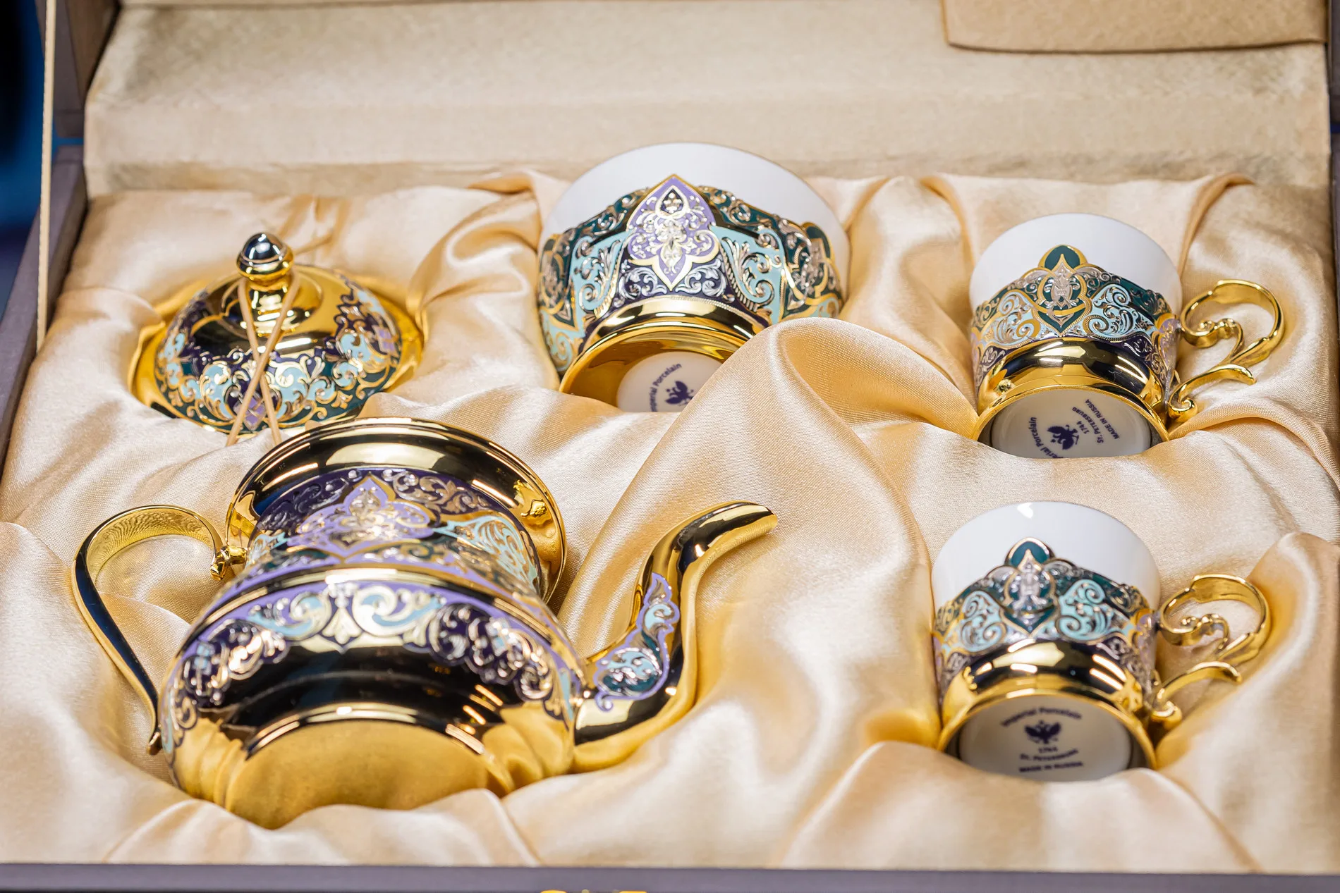 - Материалы: золото, эмаль, фарфор.